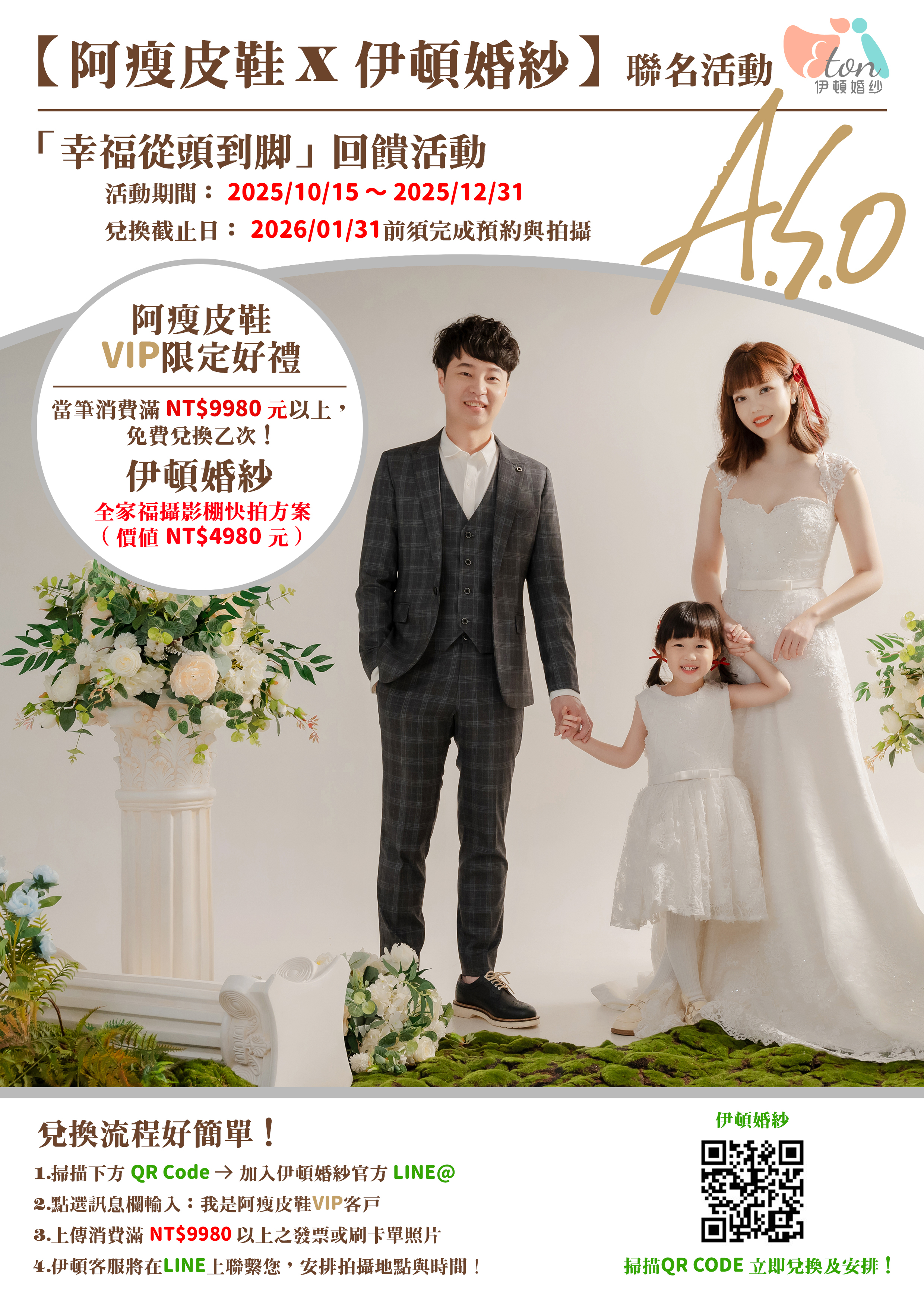 門市活動|阿瘦皮鞋 X 伊頓婚紗 聯名合作